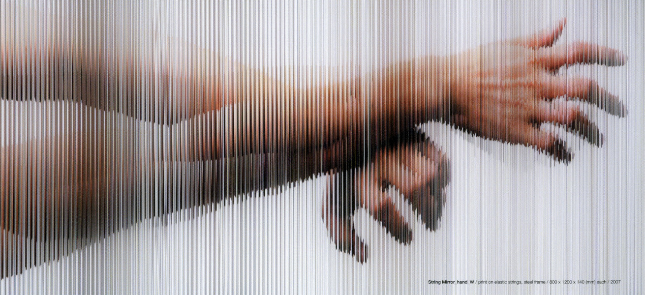 아울러 작가가 줄 혹은 LCD 작업들 각각의 명제로써 제시하고 있는 이른바 ‘거울’은 관객이 나의 작품에 접근하는 데 있어 하나의 중요한 실마리를 제공해준다. 또한 이를 주의 깊게 살펴본다면 그가 궁극적으로 추구하고자 하는 지향점이 시각적 유희에 머무는 형식적 차원이 아니라 나 자신, 나아가 관객들의 내면을 들여다보고자 하는 데 이르고 있음을 어렵지 않게 알 수 있을 것이다.